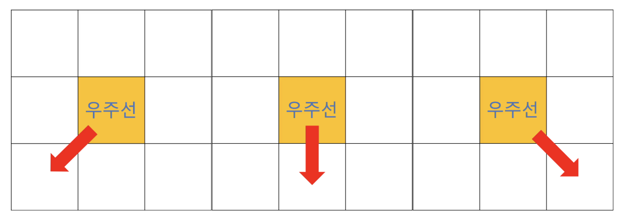 - 우주선은 세 가지 방향으로만 이동 가능: