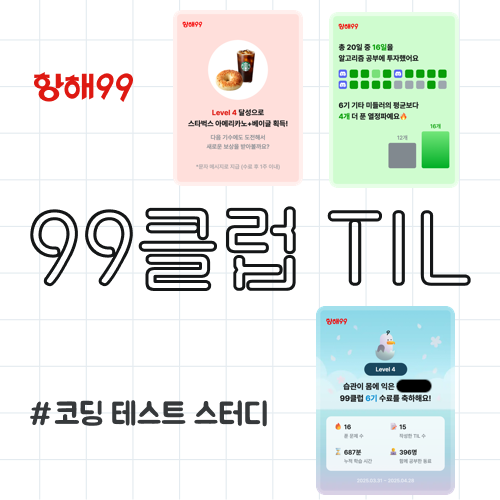 항해99에서 진행하는 1일 1알고리즘 챌린지 후기를 간단히 작성하고자 합니다 !